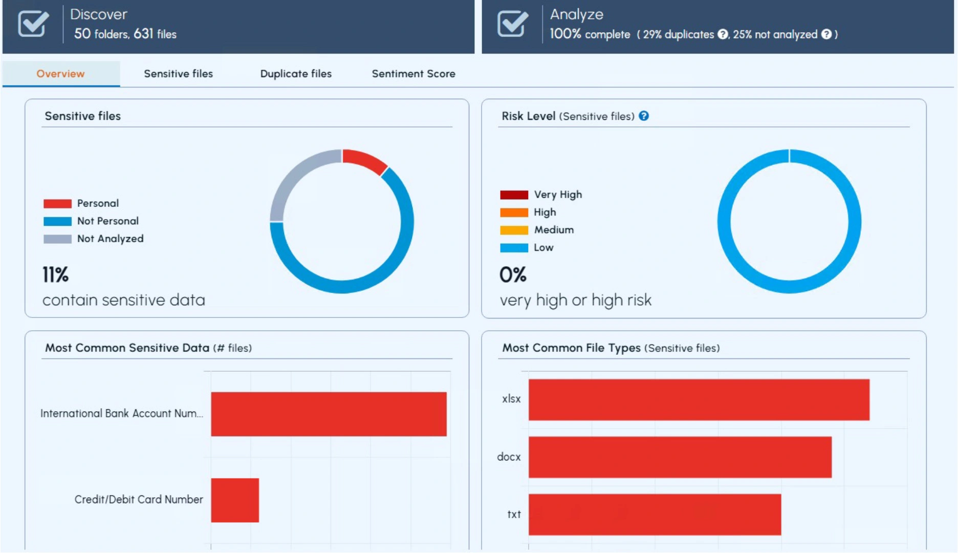 - Identification des données redondantes, obsolètes et triviales (ROT) pour optimiser votre stockage et réduire les risques.